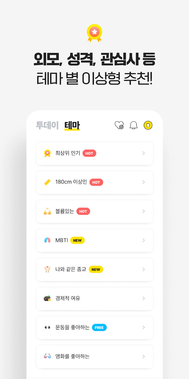 ✅테마추천으로 원하는 이상형만 골라서